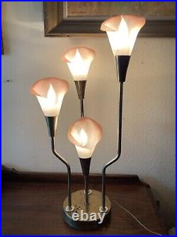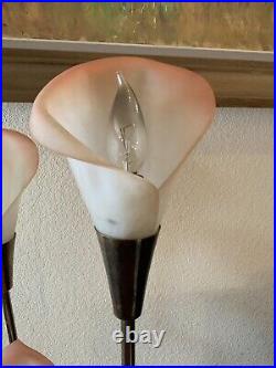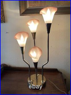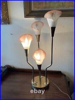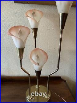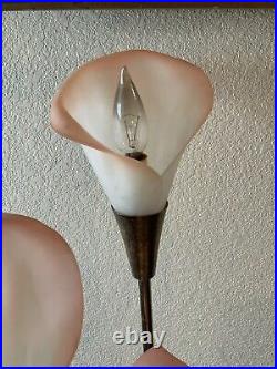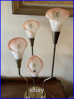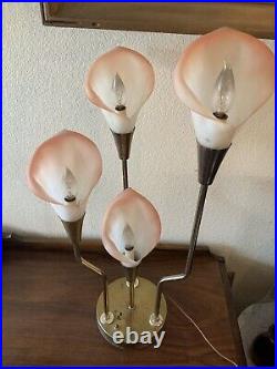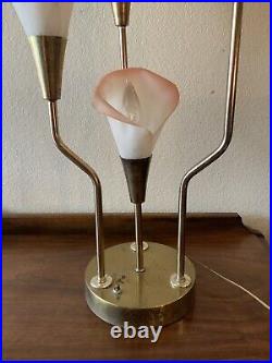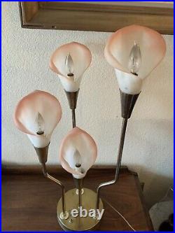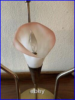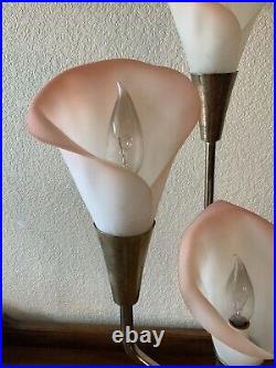 Vintage Pink Calla Lily Brass Table Lamp 3-Way 30 Tall MCM Hollywood Regency