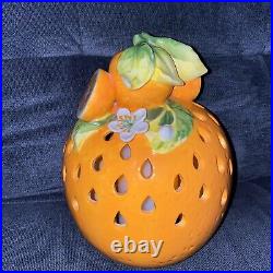 Vintage Ceramic Citrus Orange table lamp MCM style lights up