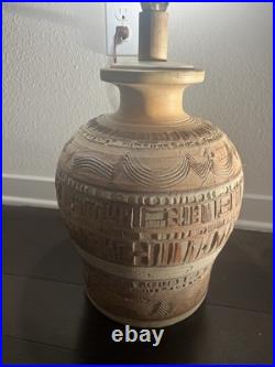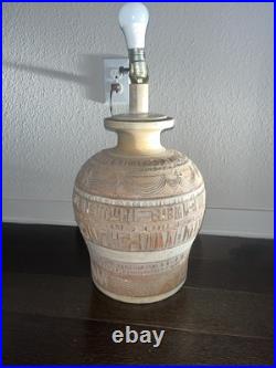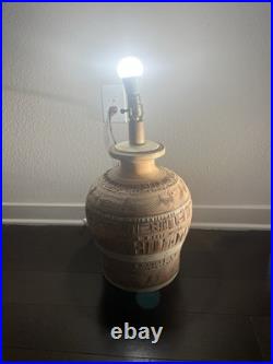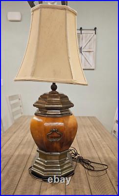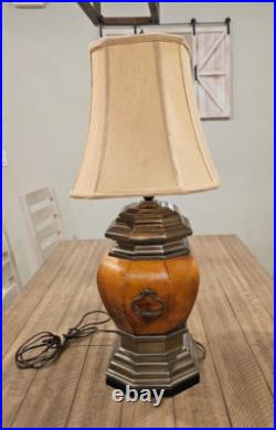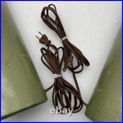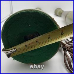 The vintage green glass table lamp in the Hollywood Regency style is a unique and stylish piece for any room. With its corded electric power source and elegant green glass material, this lamp exudes a classic and timeless appeal. The Hollywood Regency style brings a touch of glamour and sophistication, making this lamp a statement piece in any collection of collectibles or vintage décor. Its beautiful design is sure to enhance the ambiance of any space with its soft and warm lighting.
