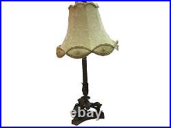 The Vintage Table Lamp features a classical female standing figure made of ceramic, standing at 45 inches from top of the lamp shade to base of lamp. The lampshade is a pleated design which complements the beautiful ornate base. This Victorian style lamp is powered by a corded electric source, with a white color scheme that adds elegance to any room. The Antique brand adds a touch of history and charm to this unique and collectible piece of lighting decor.
