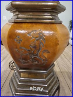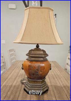 The product is a vintage 20th-century 36-inch brass table lamp with a pair of cockatoos clutching the bamboo. These large, corded electric lamps feature a white light color and come in a Vintage brass finish. The mid-century modern design by Stiffel includes a 3-way switch for control, and they are original pieces from the 1980s. With a tropical style and a vintage appeal, these lamps are a unique addition to any decor for adults. Due to age the lampshades have been replaced. DIMENSIONS: 36 x10 x 7.5 in. WEIGHS in at: 7 lbs. MEMBER of e-Bay SINCE APR.