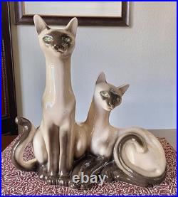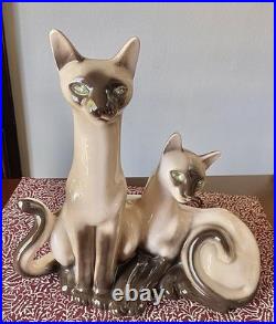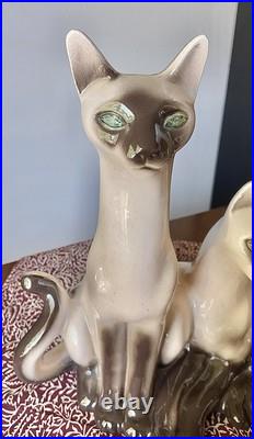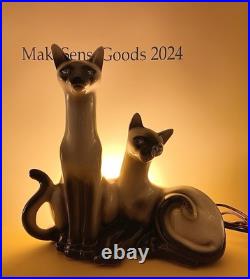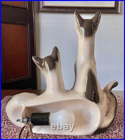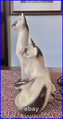 Vintage Lane & Co. Ceramic Siamese Cats Table TV Lamp 1950′s MCM Retro Pottery