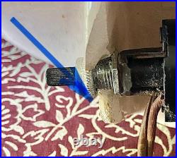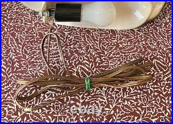 The Vintage Deena Turquoise & Gold Speckled 1950s Atomic Glass Table Lamp is a stunning piece of retro decor that truly embodies the spirit of the 1950s era. The lamp features an abstract design with a beautiful blue color and gold speckles, giving it a unique and eye-catching look. Powered by a corded source with a pull chain control style, this lamp is easy to use and adds a touch of vintage charm to any room. Standing at 12 inches tall with the socket, this original Deena Lamp is a perfect addition to any collection of vintage art, making it a standout piece for collectors and vintage enthusiasts alike. This lamp takes any standard light bulb.