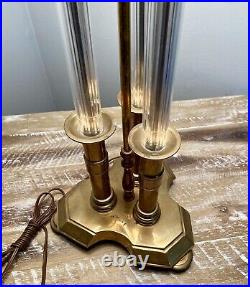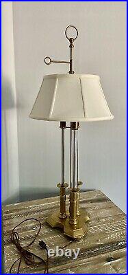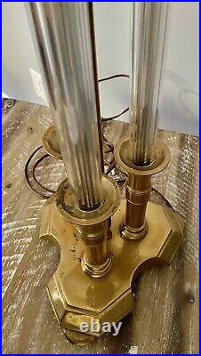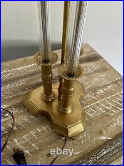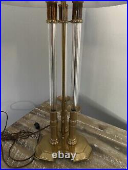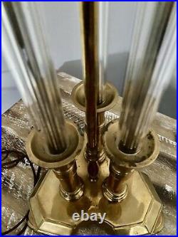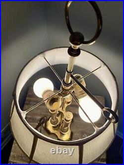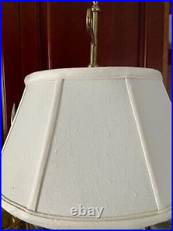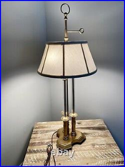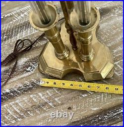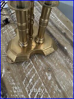 Gorgeous Vintage Brass Table Lamp, Triple Candlestick, 2 Bulbs With Ivory Shade
