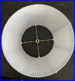 Simply fabulous statement piece! This amazing lamp is in good vintage condition. Nothing is broken or chipped. The base needs to be tightened. Base is 7″ in diameter and lamp is 25″ tall. Dark espresso / black.