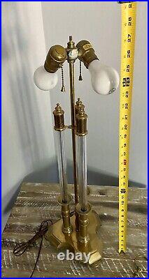 Vintage Gilt Bronze Table Lamp Three Lions Double Bulbs 25