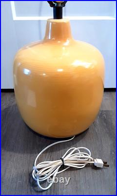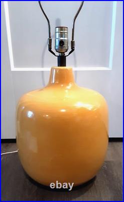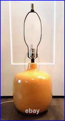 Vtg Mid Century Modern Ceramic Hieroglyph Animals Table Lamp. Stunning Large Etched Jar Shaped Ceramic Body. 3 Repeating Etched Animal Hieroglyphs Rabbit, Stork & Gazelle. Dark Brown, Light Brown Yellow & Black Glazes. Zig Zag & Vertical Line Horizontal Bands. Textured Brown Metal Base. No Chips, Cracks or Crazing. Working Cord & 3-way Socket. 33 Tall (including harp & finial). Please review all photos & entire Full Item Description. Visit & Follow our store ERAtomic Living for more Mid Century Modern Lighting, Decor & Furniture.