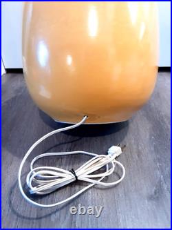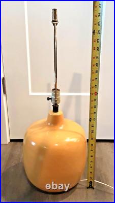 Vtg Mid Century Modern Hieroglyph Animals Brown Yellow Ceramic Table Lamp
