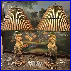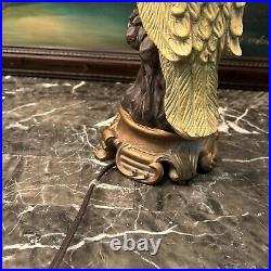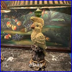 Set Of 2 Vintage bird Lamps Parrot Cockatiel Yellow Green Gold
