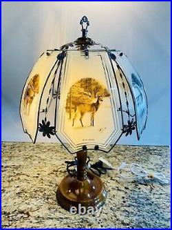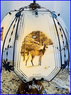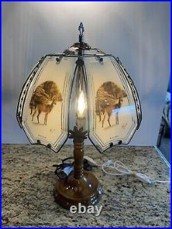 Vintage OK Lighting Deer Hunting Panel Table lamp man cave cabin EXC