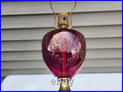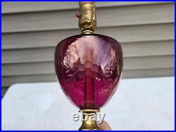BEAUTIFUL VTG HANDPAINTED PINK Floral GWTW Electric Table Lamp WithBrass Base 22H