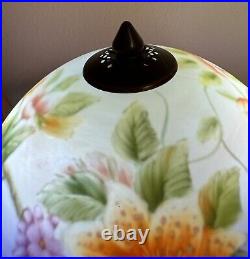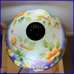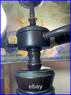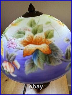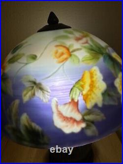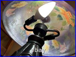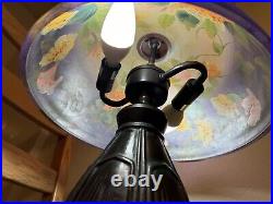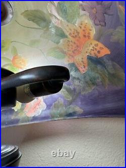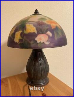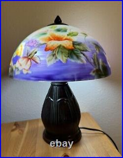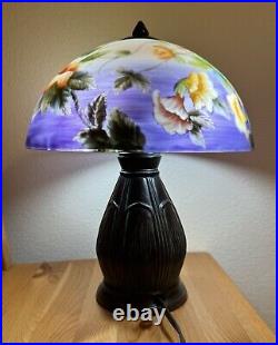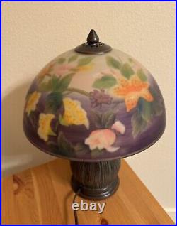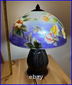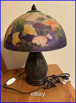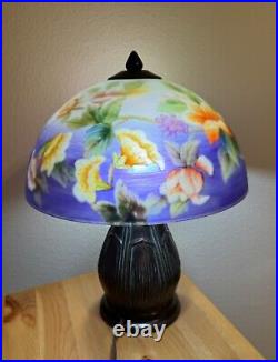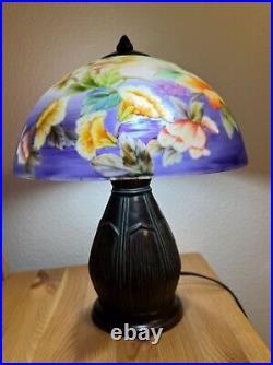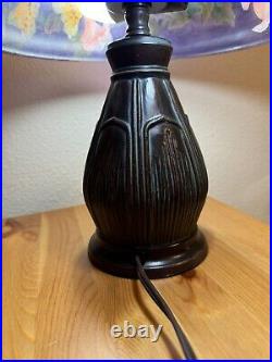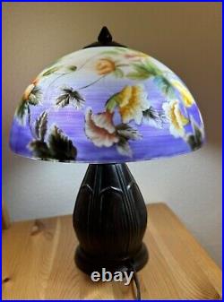 Vintage Reverse Painted Flower or Mushroom Shade Bronze Table Lamp 15 colorful