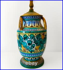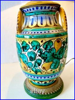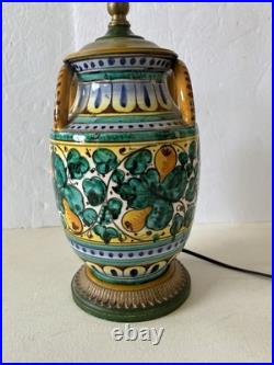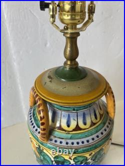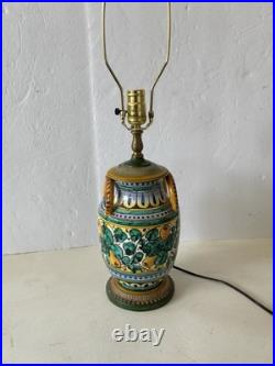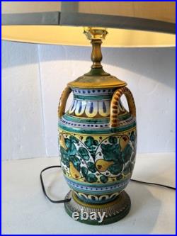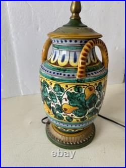 Vintage Italian Majolica Pottery Hand Painted Table Lamp