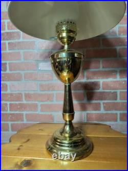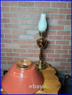 Vintage Brass 2-Light Table Lamp With White Metal Shade 18 Inch 4.5 Shade