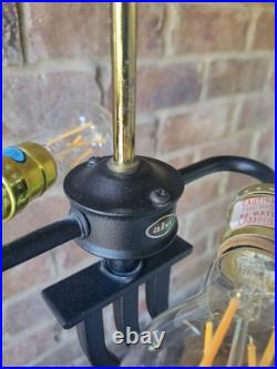 Vintage Tole Metal Floral Bouquet Table Lamp Green Patina 7 Light Flowers