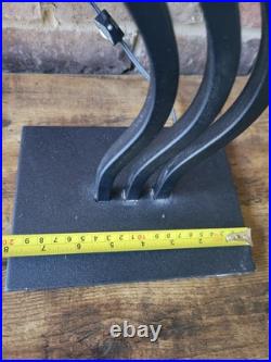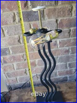 Striking vintage tole-style metal floral lamp with a sculptural bouquet design. Multiple curved stems rise from an ornate base and end in bell-shaped flower heads, giving the piece the look of a blooming garden arrangement in metal. The finish is a deep green with warm brass highlights, mimicking aged copper or verdigris and adding great character. Tall, bouquet-style floral table lamp. Seven curved stems with bell-shaped flower heads. Green enamel / patina finish with brass-toned accents. Ornate cast-metal base with scrolling detail. Inline cord switch for easy on/off. Beautiful statement piece for cottage, shabby chic, Art Nouveau, or boho décor.